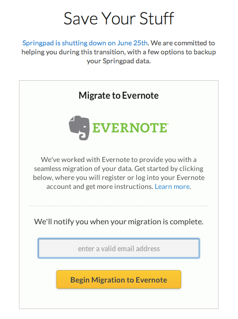 Springpad is shutting down; download or migrate your data